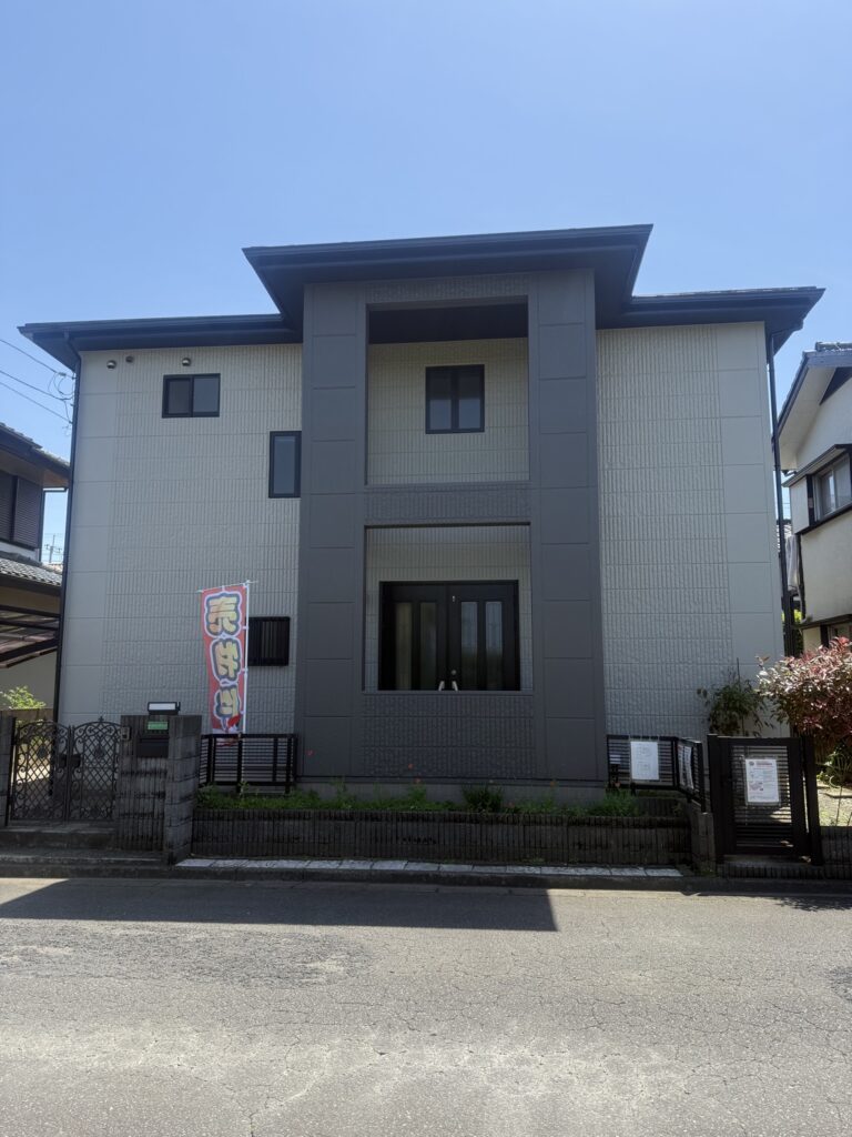 軒天、破風板、樋を黒で統一し、玄関周りとの統一感が出ました